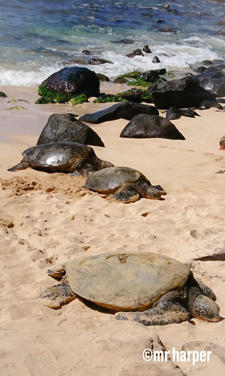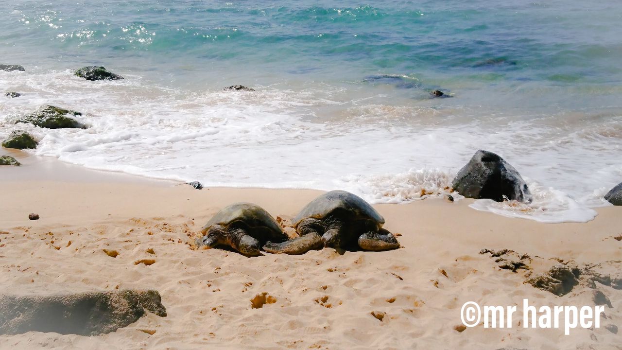 波打ち際に2匹の亀さん!